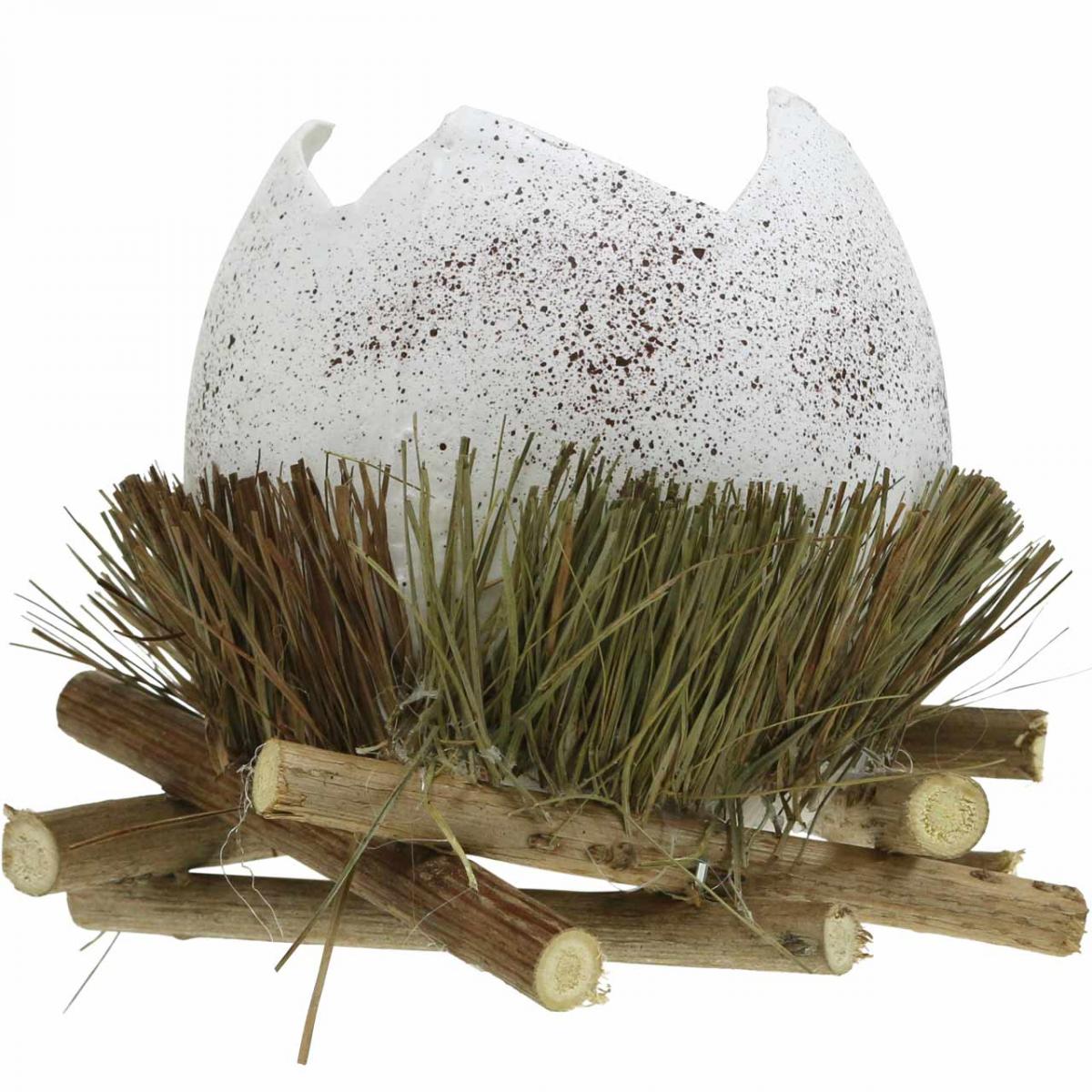 Velykinė dekoracija, kiaušinis lizde, dekoratyvinis kiaušinis, paukščio lizdas Ø9cm A10cm Balta, natūralios spalvos 4 vnt.