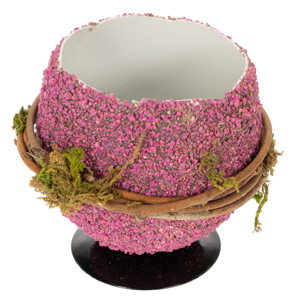 Įvairios violetinės, rožinės, rožinės ir žalios spalvos suteikia linksmą spalvų pliūpsnį. Medžiagų – plastiko, samanų ir metalo – derinys paverčia kiaušinį tikru akį traukiančiu objektu. Šakelių ir samanų vainikas suteikia dekoracijai ypač natūralumo. O svarbiausia: šį sodinamą Velykų kiaušinį galite suasmeninti su mažu sukulentų vazonėliu arba šviežiomis pavasario gėlėmis. Jūsų kūrybiškumui nėra jokių ribų!