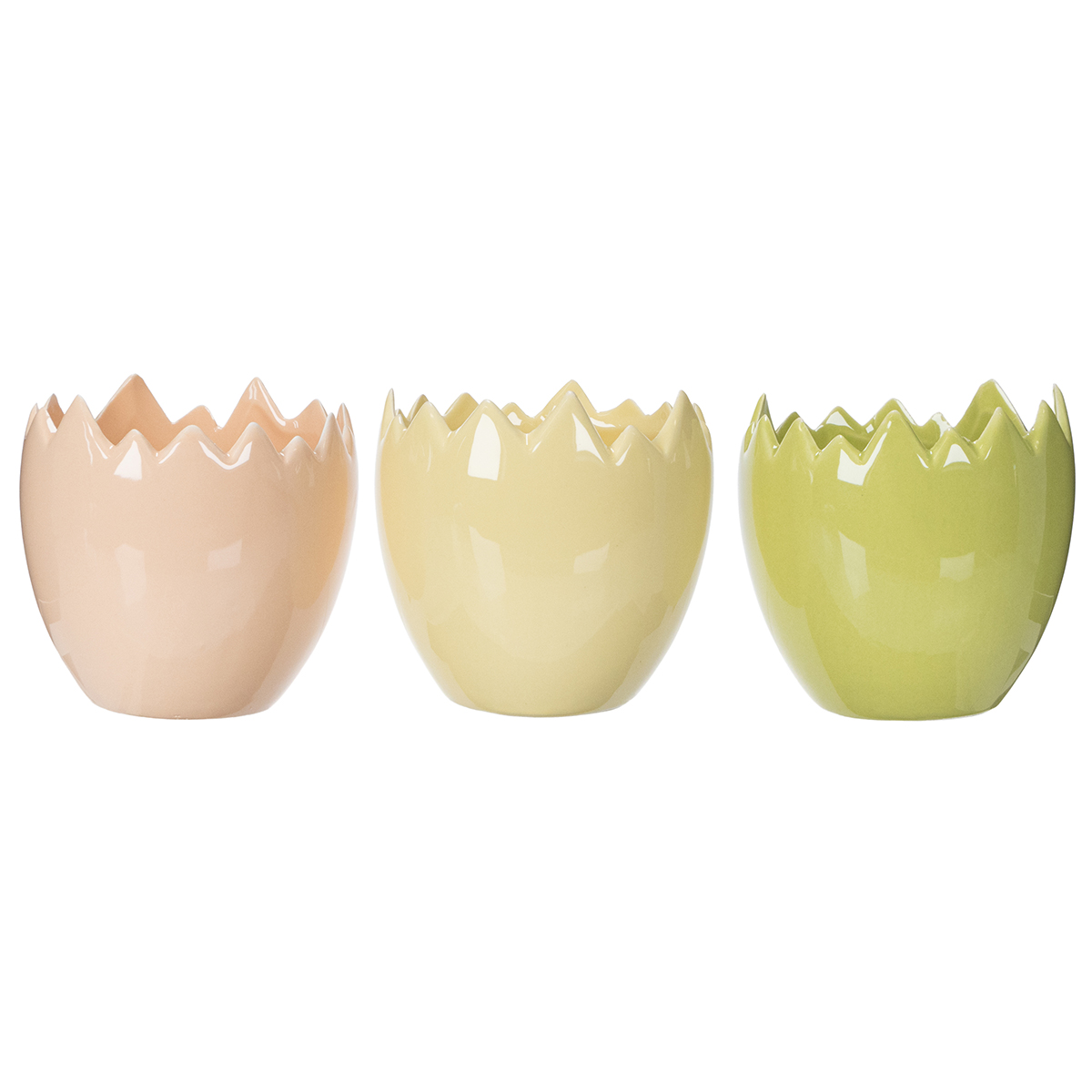 Pagaminti iš aukštos kokybės keramikos, šie vazonai yra itin tvirti ir ilgaamžiai. Jų kiaušinio forma su subtiliai nutrintu kraštu žavingai primena Velykų džiaugsmą ir suteikia ypatingo akcento bet kokiai dekoracijai. Tie, kurie mėgsta minimalistinę išvaizdą, gali vazonus sudėti atskirai, o norint ryškesnio dekoro, juos galima derinti arba papildyti kitais aksesuarais, tokiais kaip velykinės figūrėlės ar samanos.