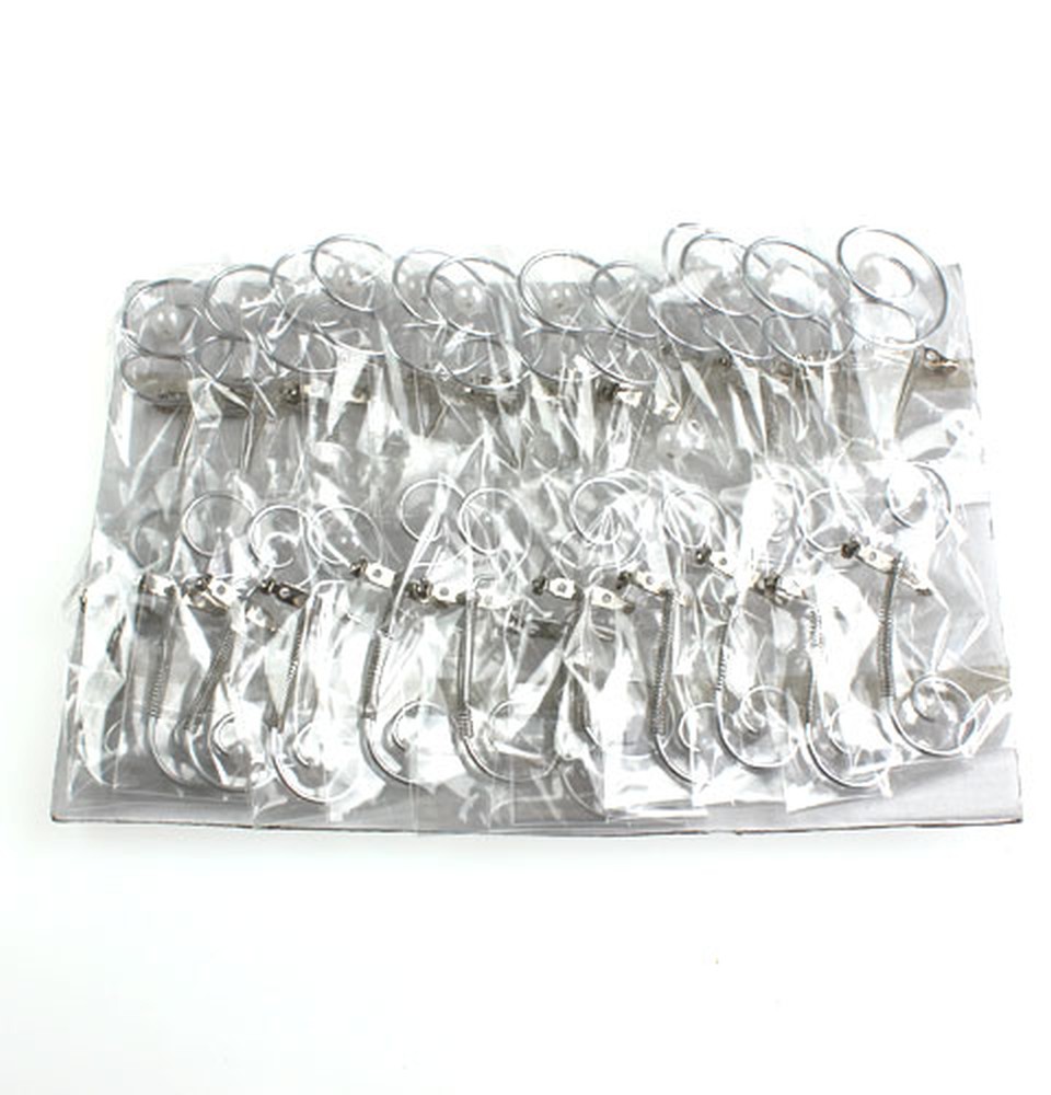 Sidabrinis vestuvinis segtukas su perlais yra dėžutėje, kurioje iš viso yra 24 vnt. Jie jau yra išlenkti su kreivėmis ir mažais apskritimais ir atrodo kaip raktai. Viena dekoracijos rinkinio pusė, t.y 12, apdirbta ir suformuota kiek kitaip nei kita pusė. Žinoma, tada galite juos sulenkti ir formuoti taip, kaip norite. Kai kurie yra apie 8 centimetrus, o kiti apie 8,5 centimetro ilgio.