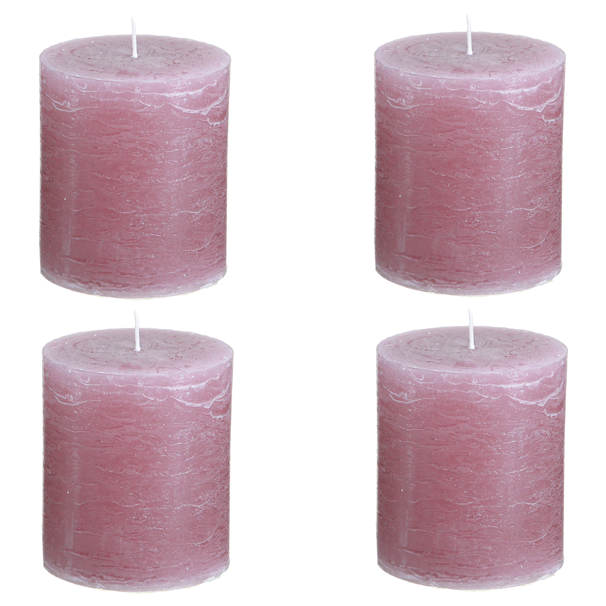Produkto pavadinimas: Vienspalvės žvakės senos rožinės stulpinės žvakės 70×80mm 4 vnt