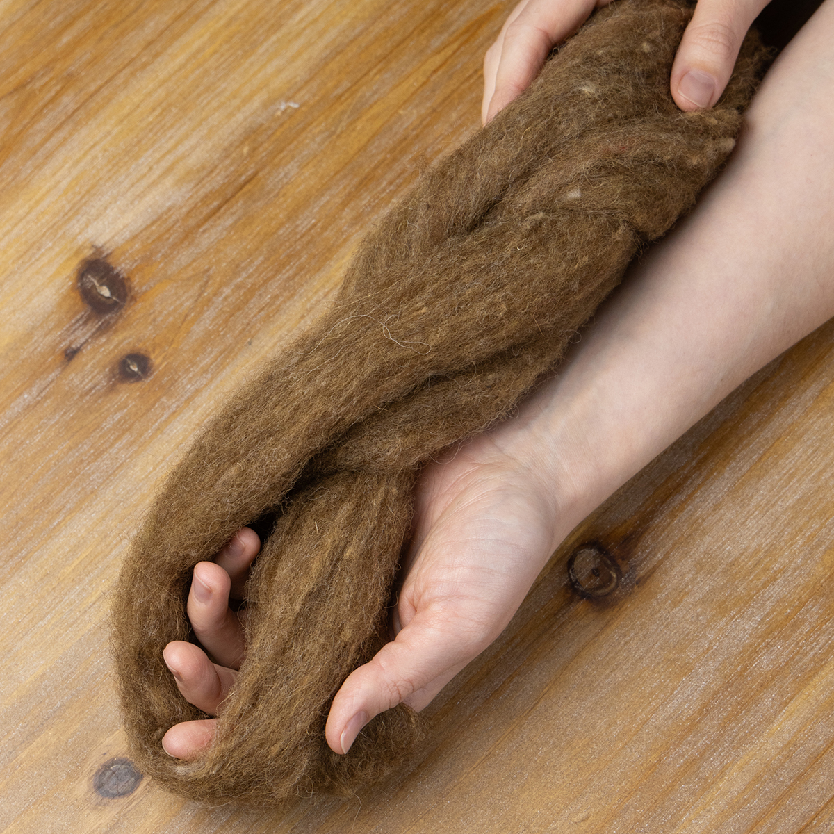 Produkto pavadinimas: Vilnos virvelė, dekoratyvinė vilna, ruda, 2 m. Vilnos virvelė, vėlimo vilna rankdarbiams ir floristikai.